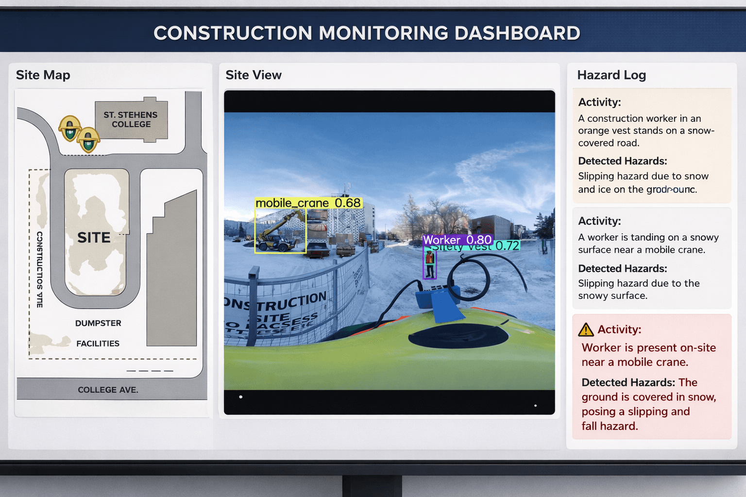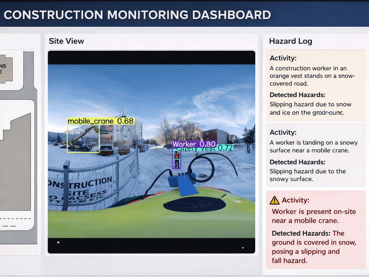 Remote Monitoring Dashboard - Safety managers can remotely view detected risks, track worker proximity to heavy machinery, and receive instant alerts to respond faster and prevent incidents.